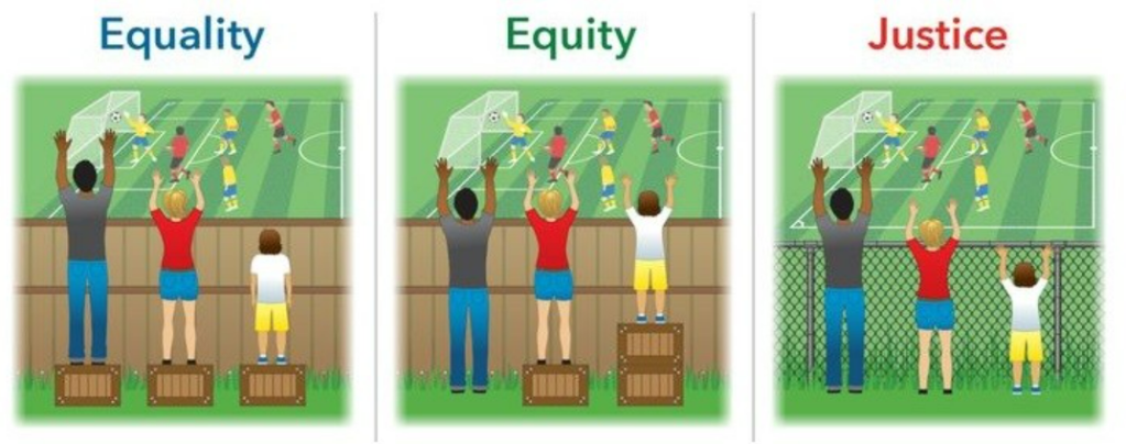 It starts with the principle above. If what I can provide for all pupils reduces the need for individual adaptations (justice, in the image above), perfect. If some individual adaptations allow all pupils to meet teacher expectations (equity, in the image above), great.